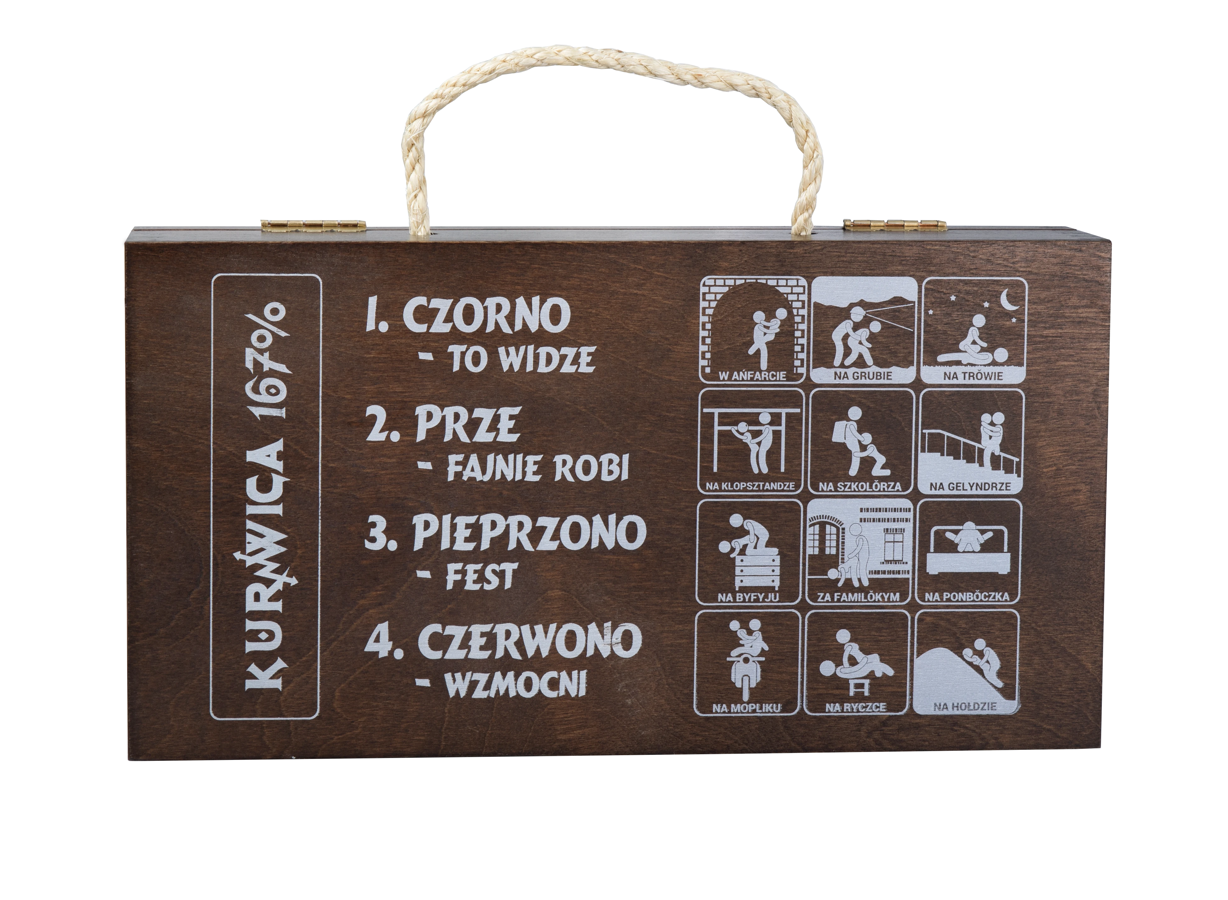 Apteczka Kamasutra po Śląsku drewniana apteczka imitującą apteczkę samochodową w której w skład wchodzą: