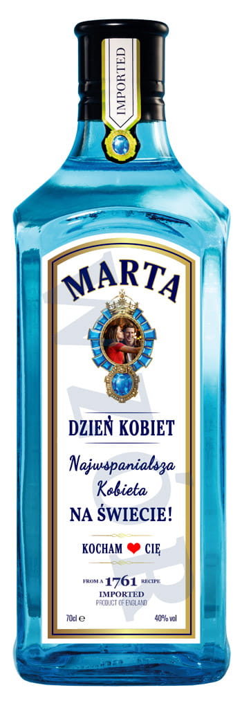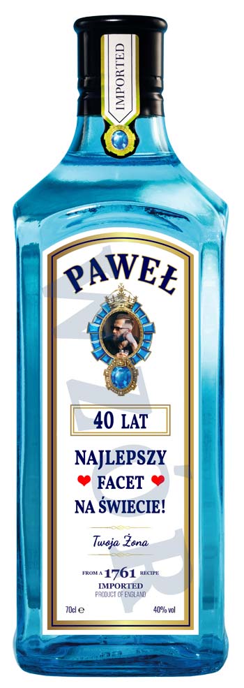 Butelka ginu Bombay Sapphire z personalizowaną etykietą to oryginalny prezent na każdą okazję. Personalizowana butelka ginu Bombay sprawi, że Twój prezent będzie niepowtarzalny. Możemy zaprojektować etykietę z okazji urodzin, imienin, ślubu, prośby o świadkowanie, podziękowania, rocznicy itd. A wszystko to według Twoich wytycznych, z Twoim zdjęciem oraz tekstem.