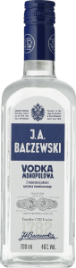 J.A. Baczewski to wódka wyprodukowana z najwyższej jakości spirytusu ziemniaczanego. Ta bezglutenowa wódka była trzykrotnie destylowana dzięki czemu ma łagodny i delikatny smak. Bez problemu można ją spożywać w temperaturze pokojowej w formie szotów lub jako składnik różnych drinków/koktajli. Biorąc pod uwagę stosunek jakości do ceny, produkt ten, idealnie sprawdza się na różnego rodzaju imprezach okolicznościowych np. wesele, impreza firmowa czy urodziny.