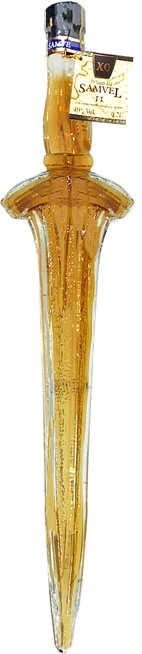 Brandy Miecz Excalibur - produkt zawiera 0,2L 10-letniej armeńskiej brandy Samvel stworzonej z najwyżej jakości destylatów zawartej w szklanej, nietuzinkowej butelce w kształcie miecza. Leżakowanie w dębowych beczkach przez 10 lat nadaje brandy wyjątkowy owocowy bukiet i łagodny smak. Wysoka jakość wykonania oraz przystępna cena powoduje, iż jest to idealny produkt na prezent dla każdej osoby.